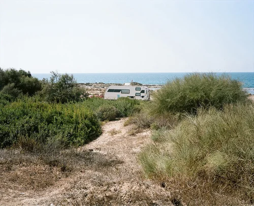 After a long stay abroad, where I designed my artistic language, I find myself photographically mapping the coast of the state, in one of the first bodies of work that I create in Israel. This is not a documentary series though the mapping operation could be perceived as such. The photos keep their distance, despite the personal and subjective observation. I am looking for differing interpretations of the sea and the shore. Historical significance, religious, social, symbolic. The Participants characters in the scenes, represent these interpretations. I am fascinated by the relationship between the human condition and its involvement in nature. Small figures compared with the landscape but are an integral part of it, even when they are not included in the frame. Both individuality and their characteristics can be seen, and yet both symbolic and almost generic. The works create groups of figures unified in the same frame. A connection and a personal narrative is formed, through the concept of the isolated moment out of many moments in the cyclic movements of the sea. The sea and land, and their connection point - the landscape – are supported in human figures, and vice versa. The distance I keep begins in the act of photography itself. My place as a photographer remains as an observer who is viewing on the viewers, and not as part of the audience.